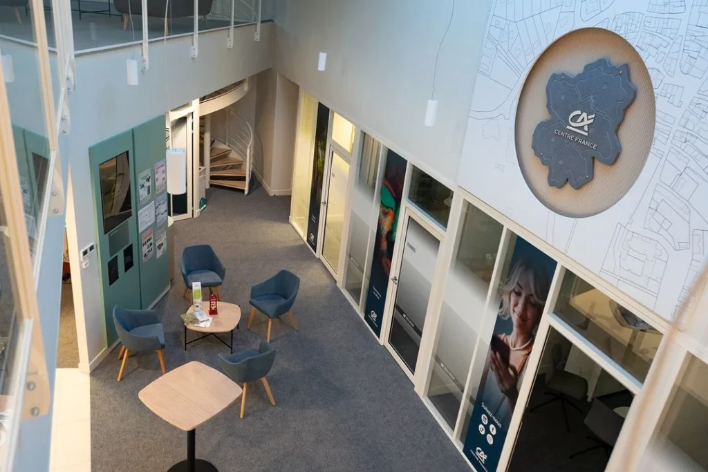 L’objectif était de moderniser les espaces afin de les aligner avec les standards actuels du réseau, tout en maintenant la lisibilité, la confidentialité et le confort indispensables à une activité bancaire.